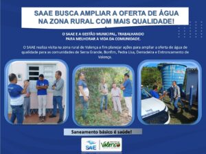 SAAE BUSCA AMPLIAR A OFERTA DE ÁGUA NA ZONA RURAL COM MAIS QUALIDADE! Nesta segunda feira dia 17/11 o novo diretor do SAAE de Valença,