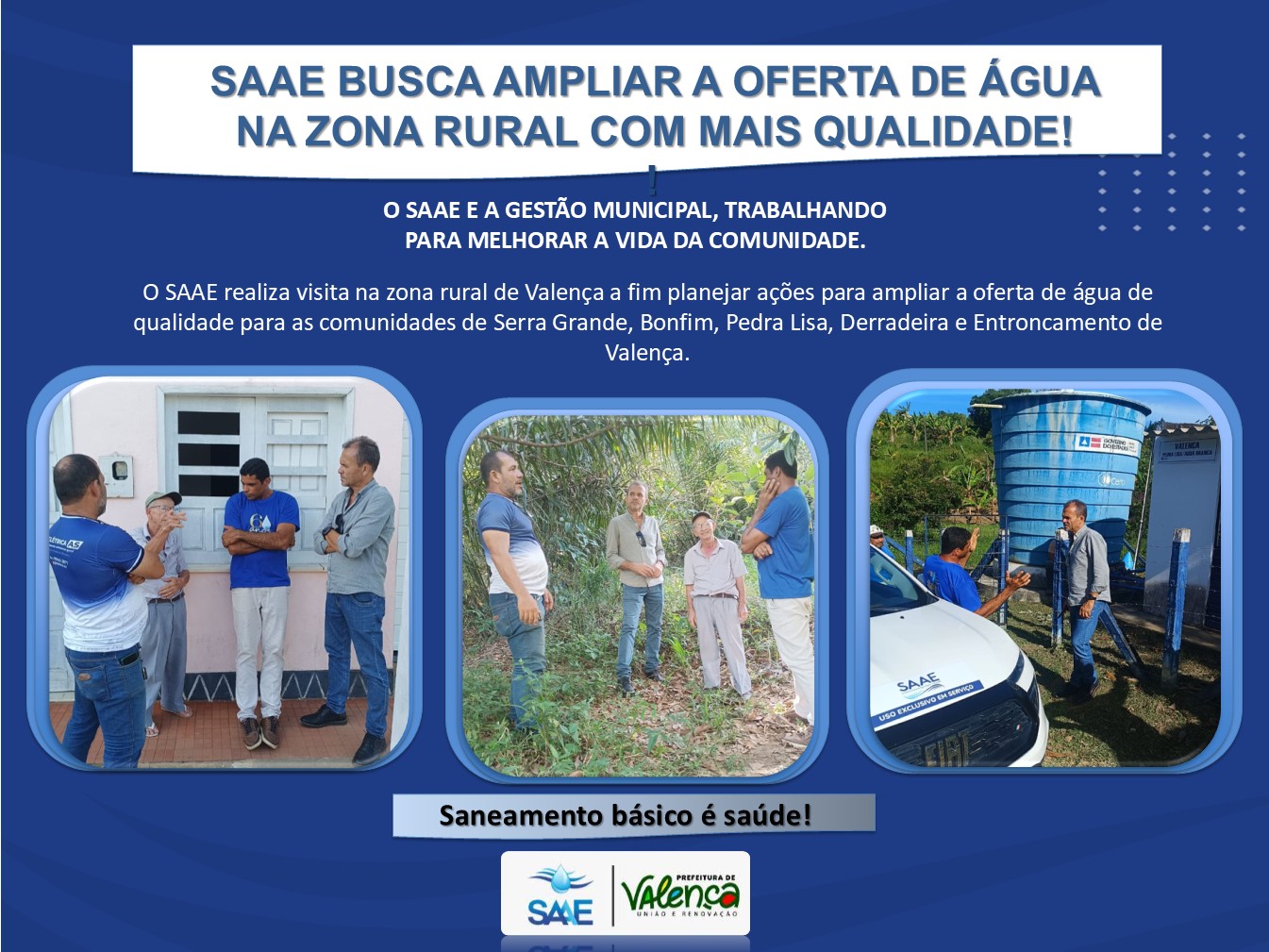 SAAE BUSCA AMPLIAR A OFERTA DE ÁGUA NA ZONA RURAL COM MAIS QUALIDADE!